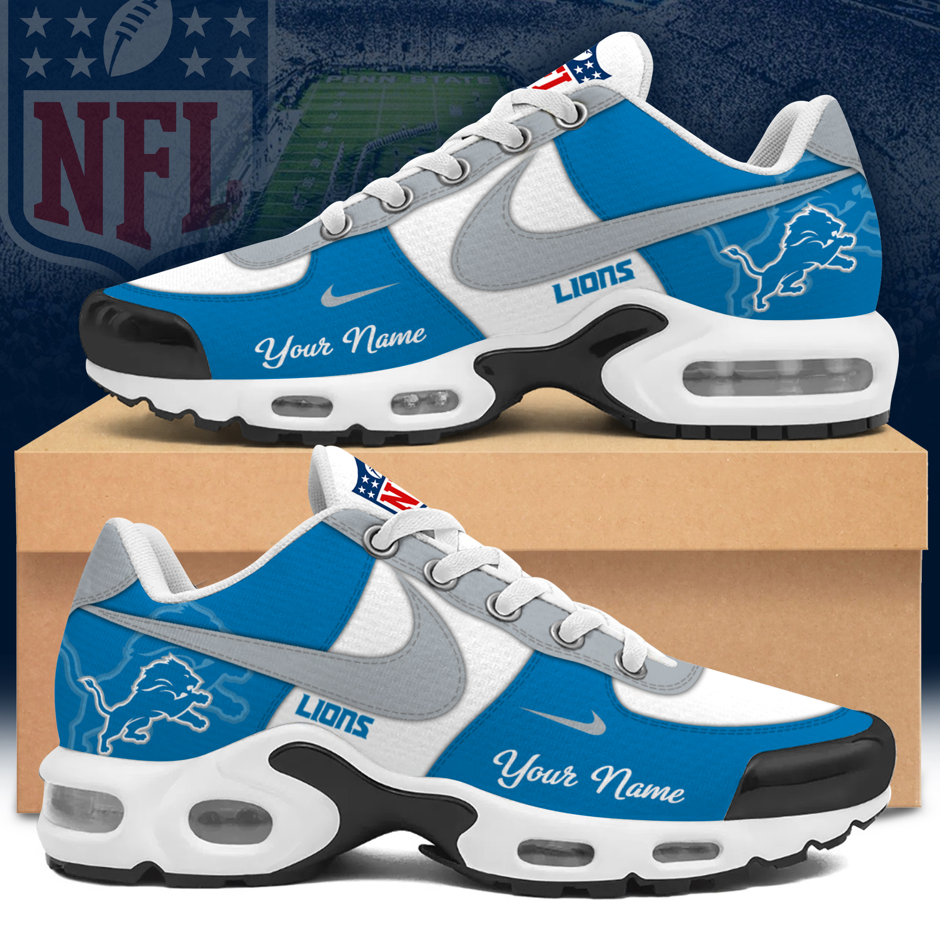 Detroit Lions Custom Name Air Cushion Sport Shoes 2025 | NFL Shoes JR3