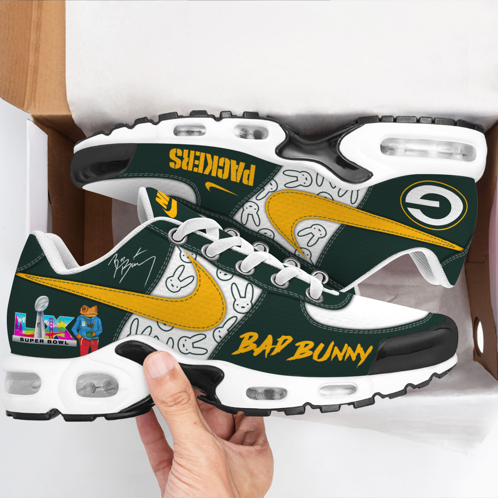Men’s Green Bay Packers Bad Bunny 2026 Super Bowl LX Air Max Plus Shoes | NFL Shoes JR2