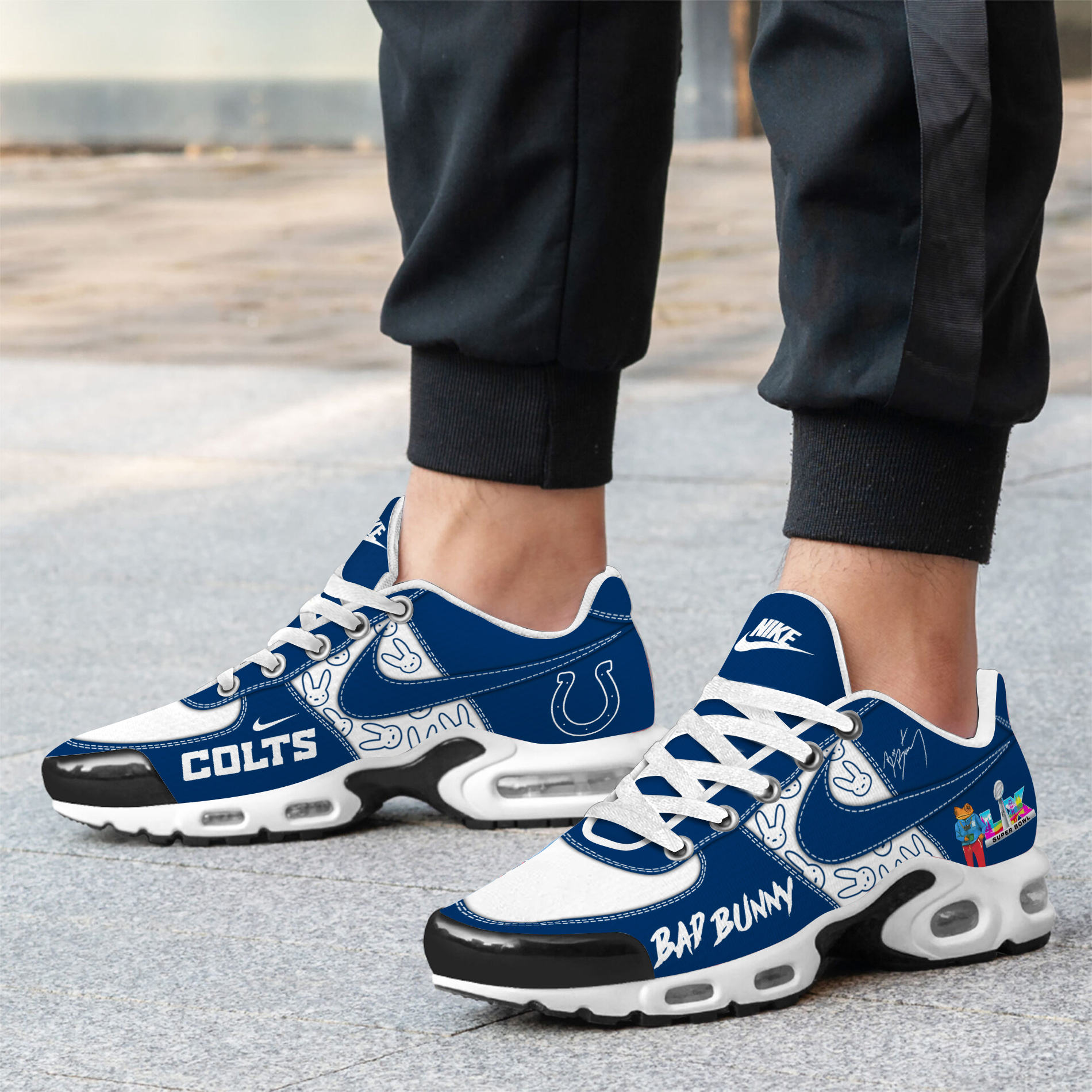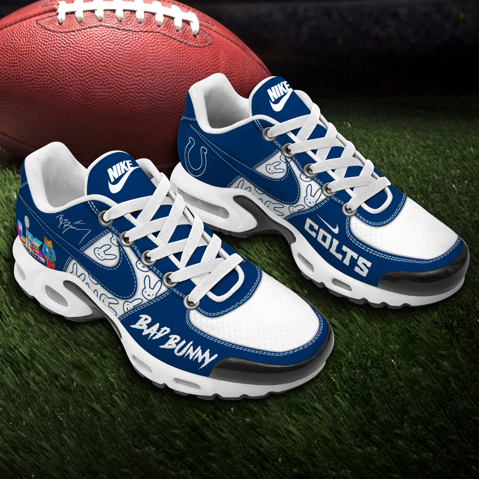 Men’s Indianapolis Colts Bad Bunny 2026 Super Bowl LX Air Max Plus Shoes | NFL Shoes JR2